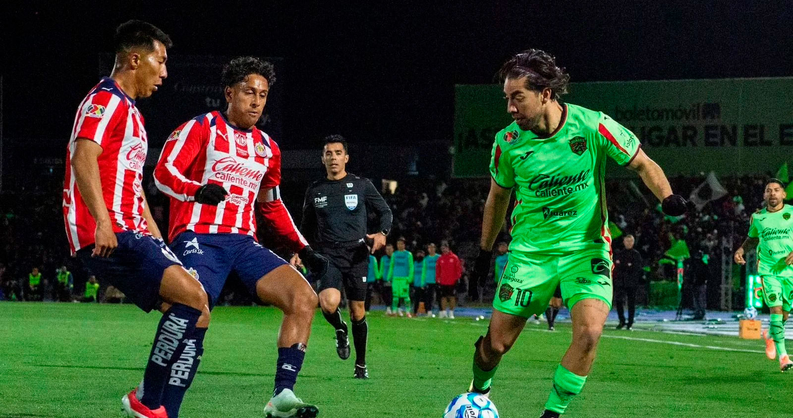 Un minuto después, el estadio explotó. José Luis Rodríguez “El Puma” apareció por la derecha y sacó un disparo potente que se estrelló en el travesaño, dejando a Chivas al borde del susto y a la afición fronteriza con el grito ahogado.