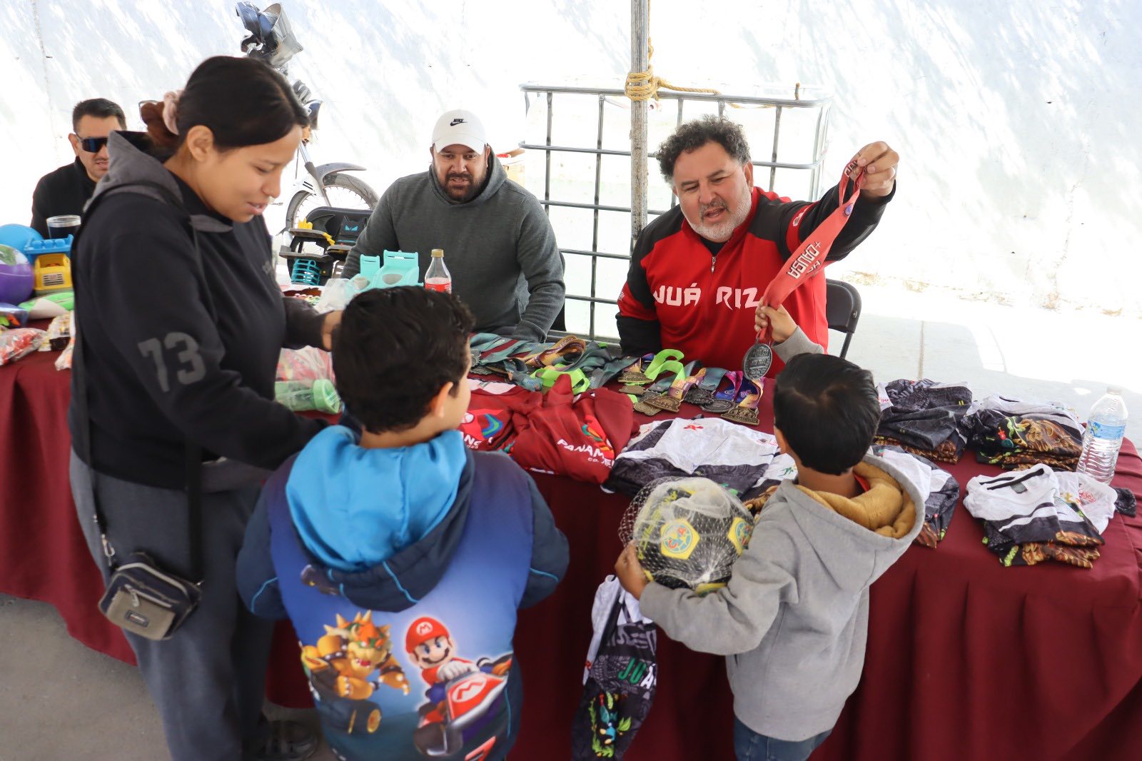 Como parte de la dinámica, al finalizar cada reto los participantes tuvieron la oportunidad de elegir entre juguetes, medallas o playeras conmemorativas de distintos eventos organizados por el IMDEJ, lo que dio un toque especial a la convivencia comunitaria.